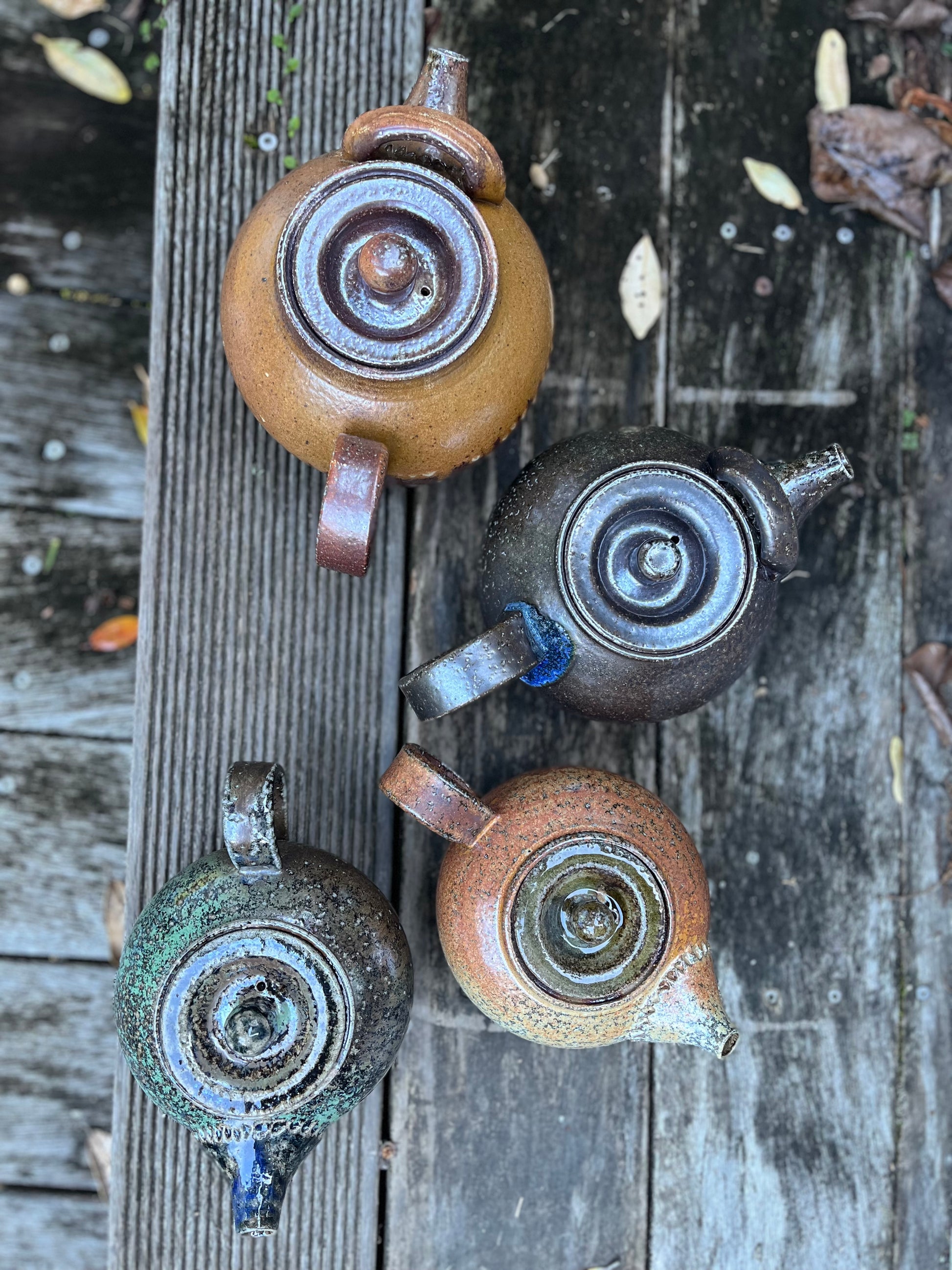 High fire stoneware teapot, fired in a brick kiln. The shine and texture is given by salt added to the kiln at high temperature.